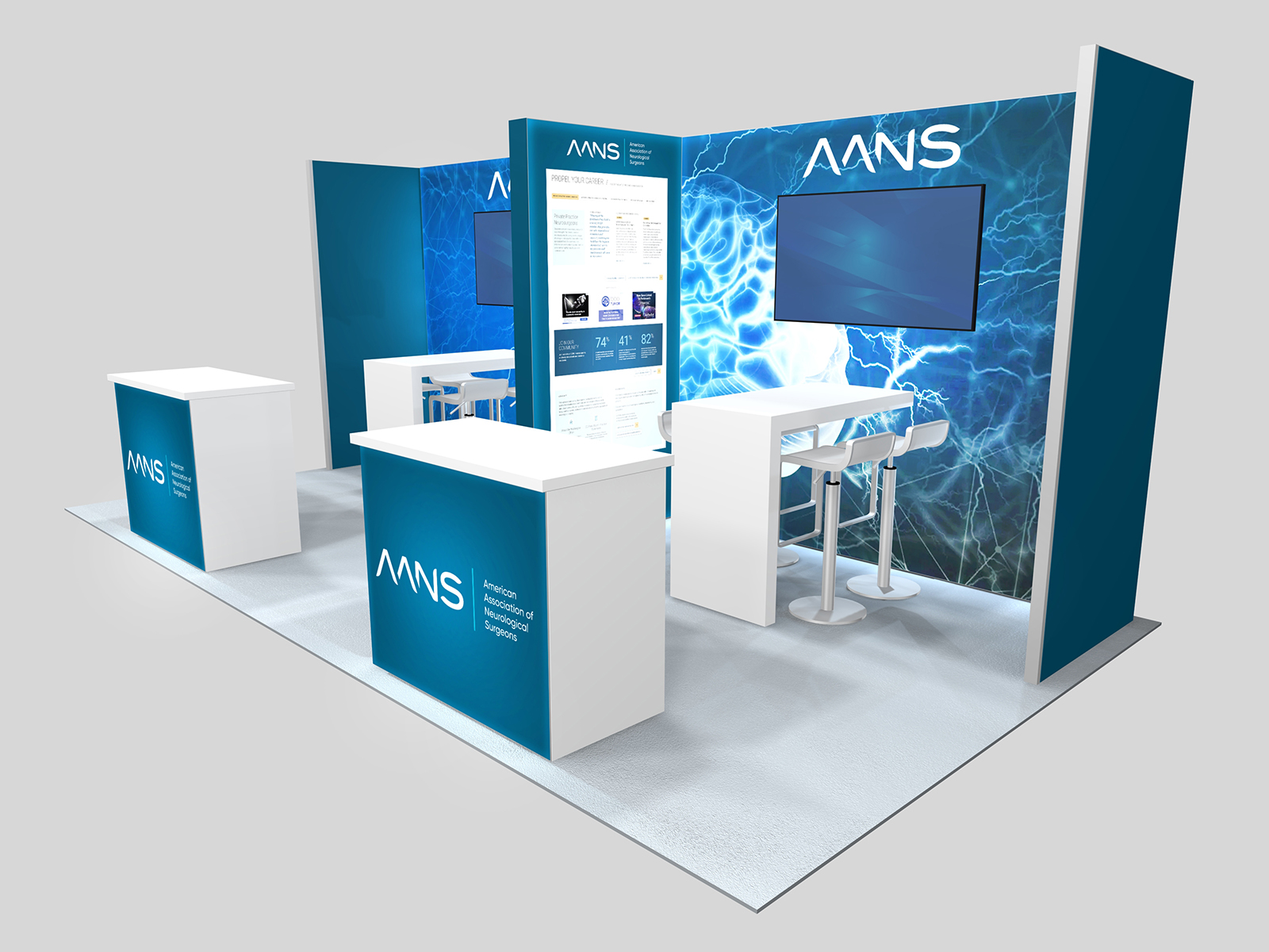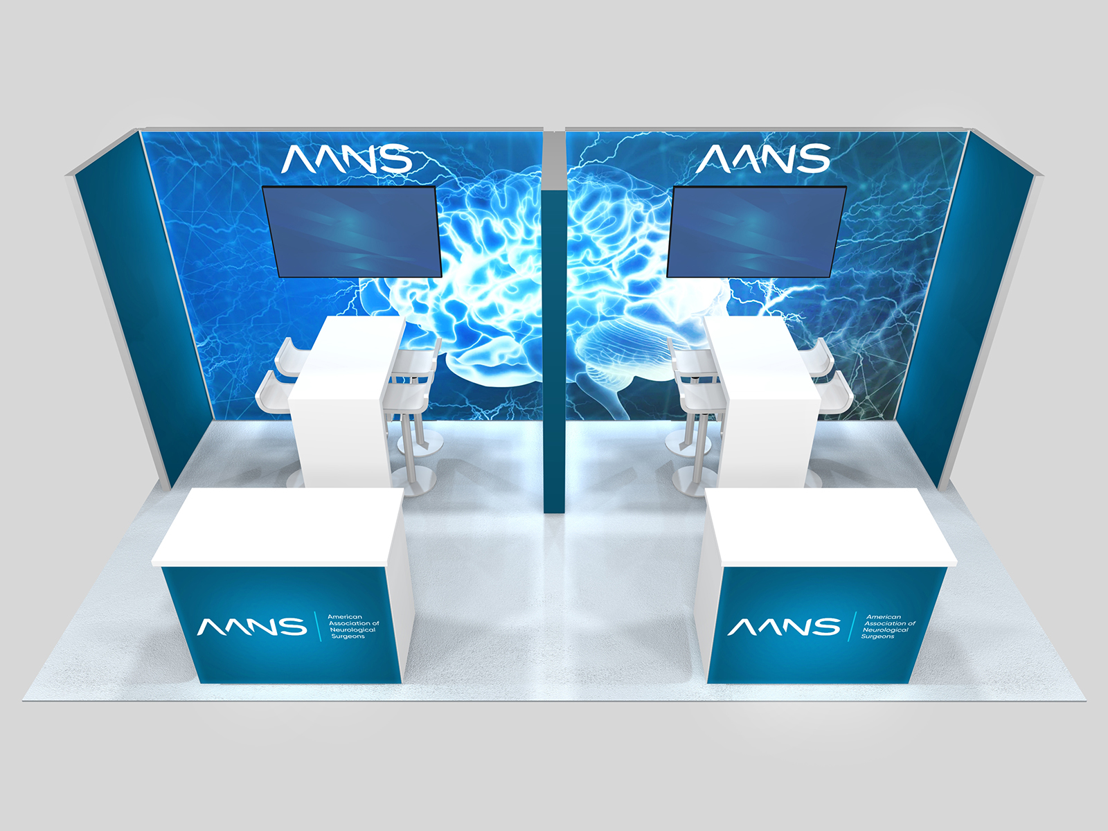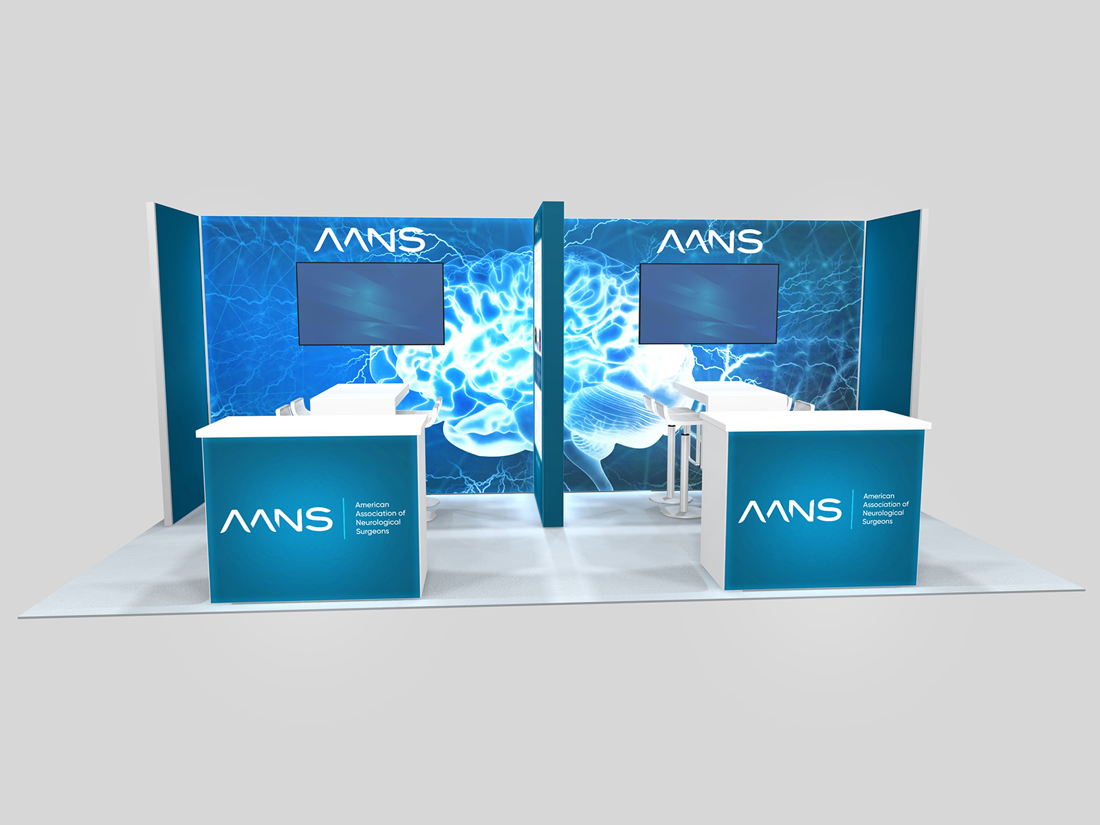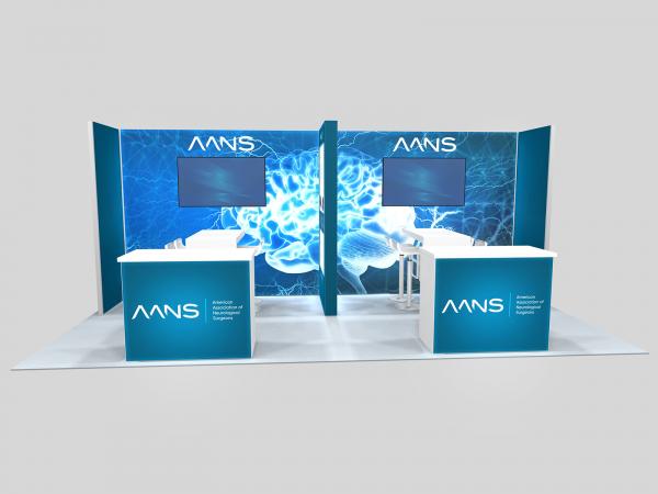 New business is the #1 priority for most exhibitors at trade shows. It could be higher sales from existing clients or orders from new customers. The RE-2156, RE-2157, and RE-2158 series inlines are designed to maximize your one-on-one time with clients and customers. All three have semi-private spaces with two waterfall counters to facilitate seating for demonstrations and meetings. They all include multiple large format graphics and monitor mounts.