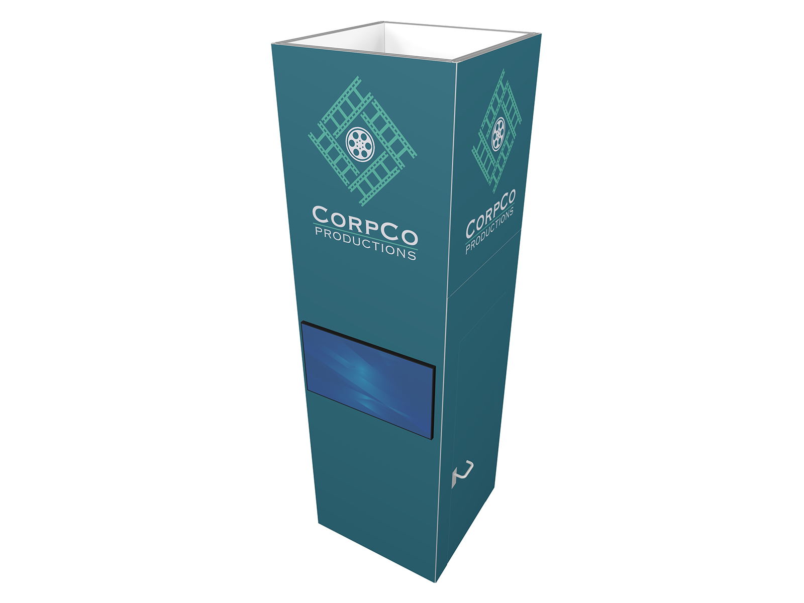 Towers are the ideal building block for creating a customized island exhibit. Start by choosing the tower size. Then add counters, workstations, lightboxes, and furniture to complete the design. For many exhibitors, flexibility is crucial. Their booth size and messaging often changes depending on the show and the audience. A tower serves as the central feature in the booth design but everything else can vary. Perfect!